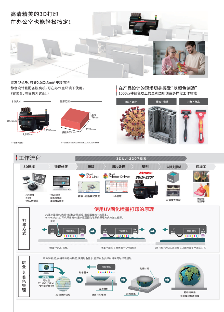 UV固化喷墨紧凑型全彩3D打印机